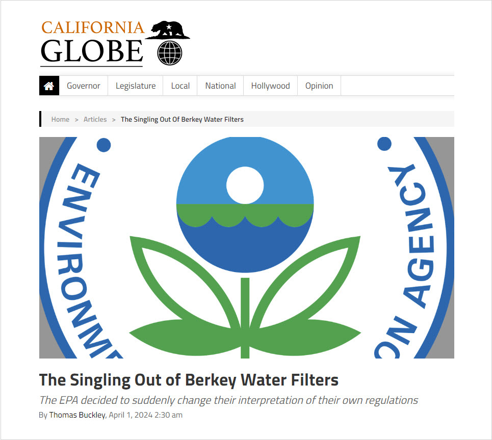California Globe article: The Singling Out of Berkey Water Filters